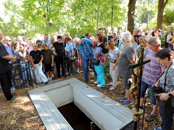 Unser Pfarrer Wieckowski hielt eine Andacht in der Kapelle. Die Besucher konnten im Anschluss an einer Prozession mit historischer Trauerkutsche zur Gruftanlage teilnehmen.